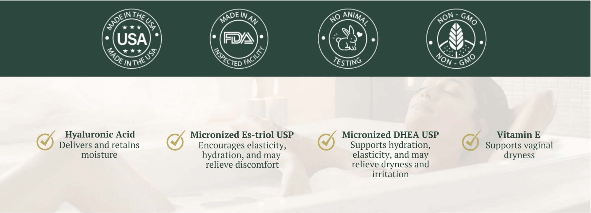 - Each dose delivers 240mcg of bio-identical Estriol and 5mg of bio-identical DHEA